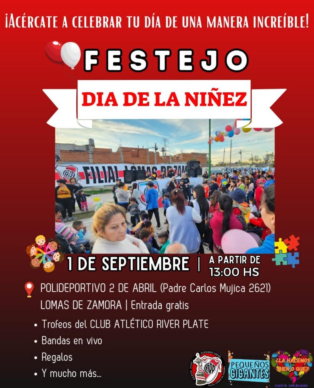 El merendero Pequeños Gigantes de Santa Catalina, junto a filial Lomas del Club Atlético River Plate y del grupo de amigos solidarios "¿Lo hacemos bien o qué?", se prepara para lo que será el festejo por el Día de la Niñez: el evento se hará el próximo domingo 1º de septiembre y esperan tener la presencia de aproximadamente 400 niños y niñas del barrio, a quienes les regalarán una gran jornada llena de juegos y sorpresas.