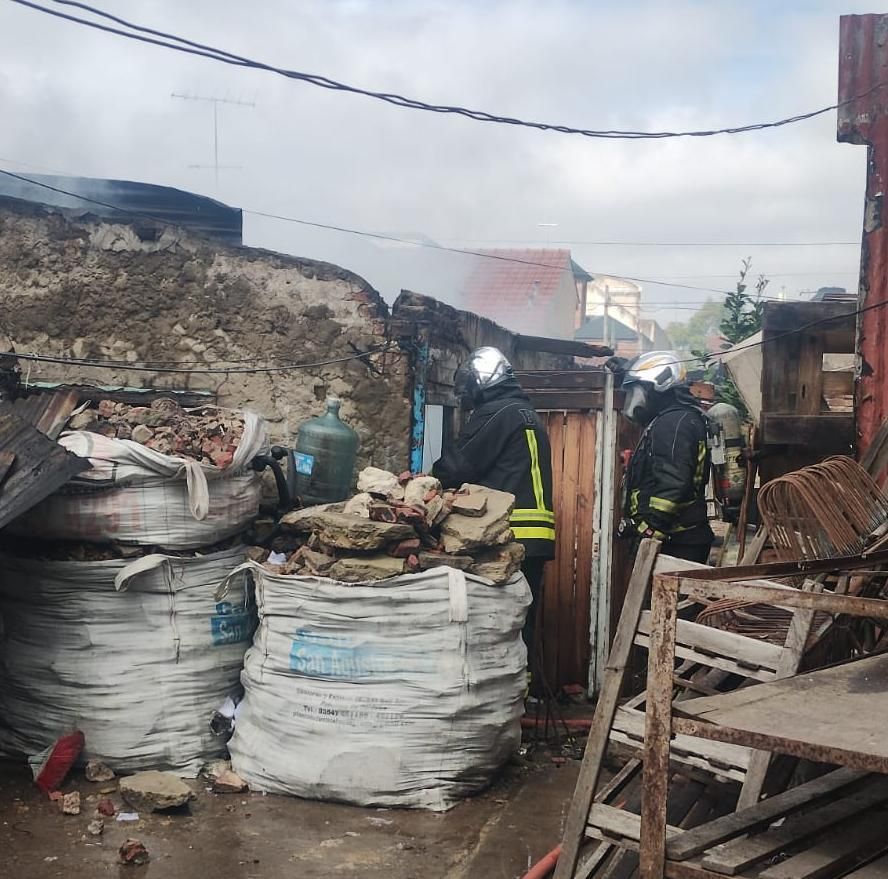 Los bomberos atravesaron el patio, donde había varios escombros, y llegaron al pequeño galpón con una larga manguera para poder extinguir el fuego.