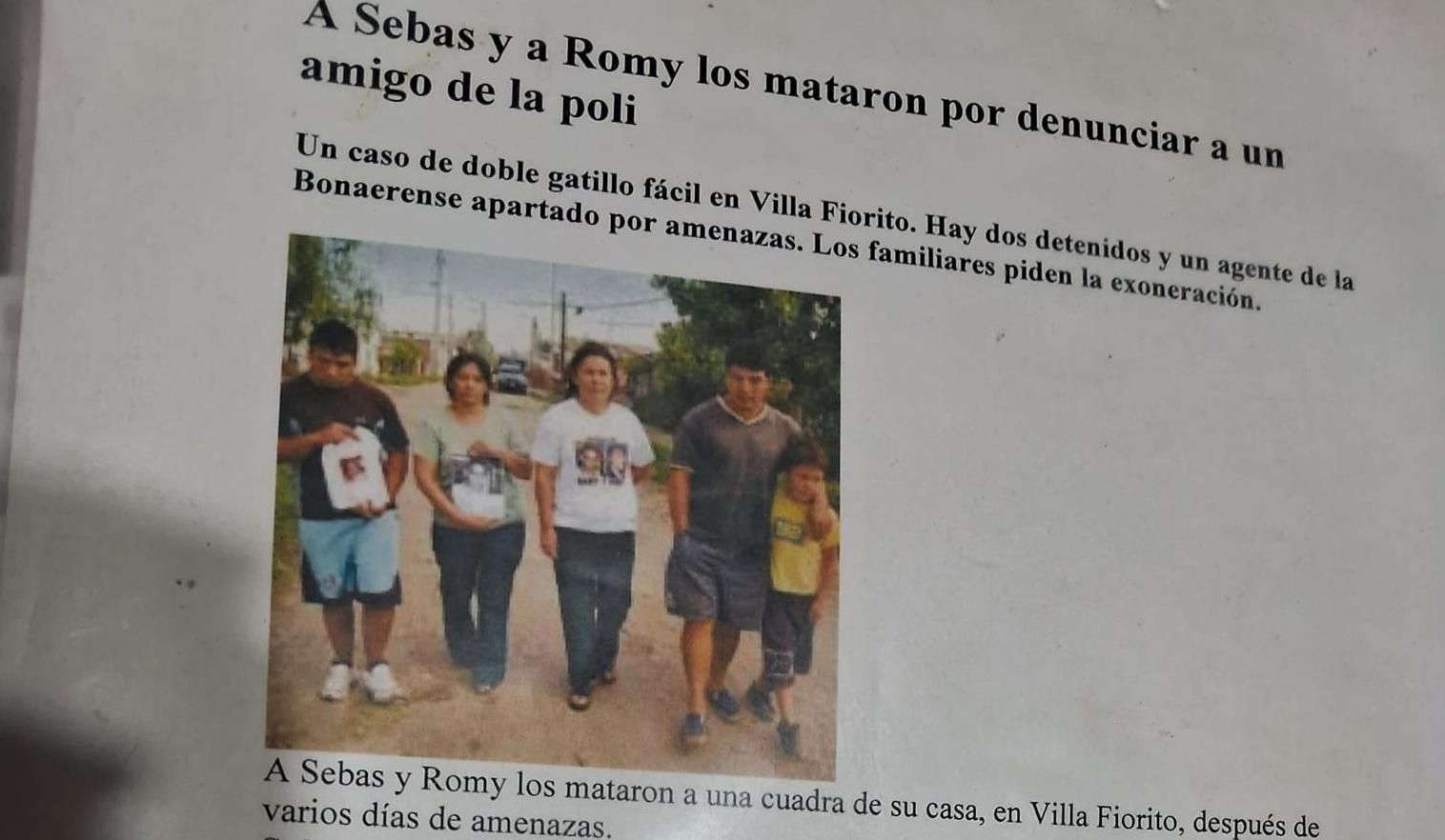 En cuanto al móvil del crimen, se supo que Matías, el hermano de Sebastián, había denunciado por robo a un integrante de una banda, amigo de un policía. Esto dio comienzo a una serie de amenazas y persecuciones contra su familia. El 3 de noviembre de 2005, la banda los atacó a tiros mientras estaban con amigos en una esquina de Fiorito. No pudieron matar a Matías, pero asesinaron a su hermano y a un amigo de éste.