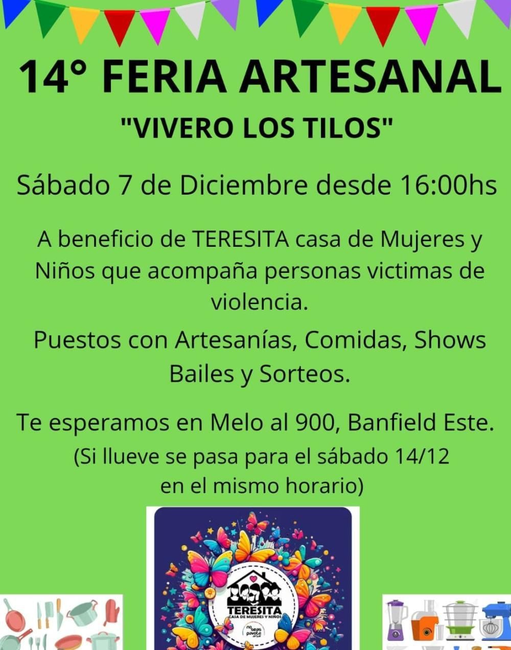 La feria N° 14 tendrá lugar el 7 de diciembre desde las 16 en Melo al 900, Banfield Este y los que la visiten se van a encontrar con cientos de puestos de artesanos (quieren llegar a los 140), comidas, shows, bailes y sorteos.
