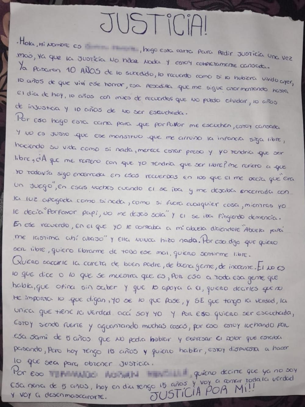 Días atrás, había pedido la ampliación de la declaración de la menor, que por medio de una carta exigió ser escuchada por la Justicia, luego de su Cámara Gesell, realizada en 2017.