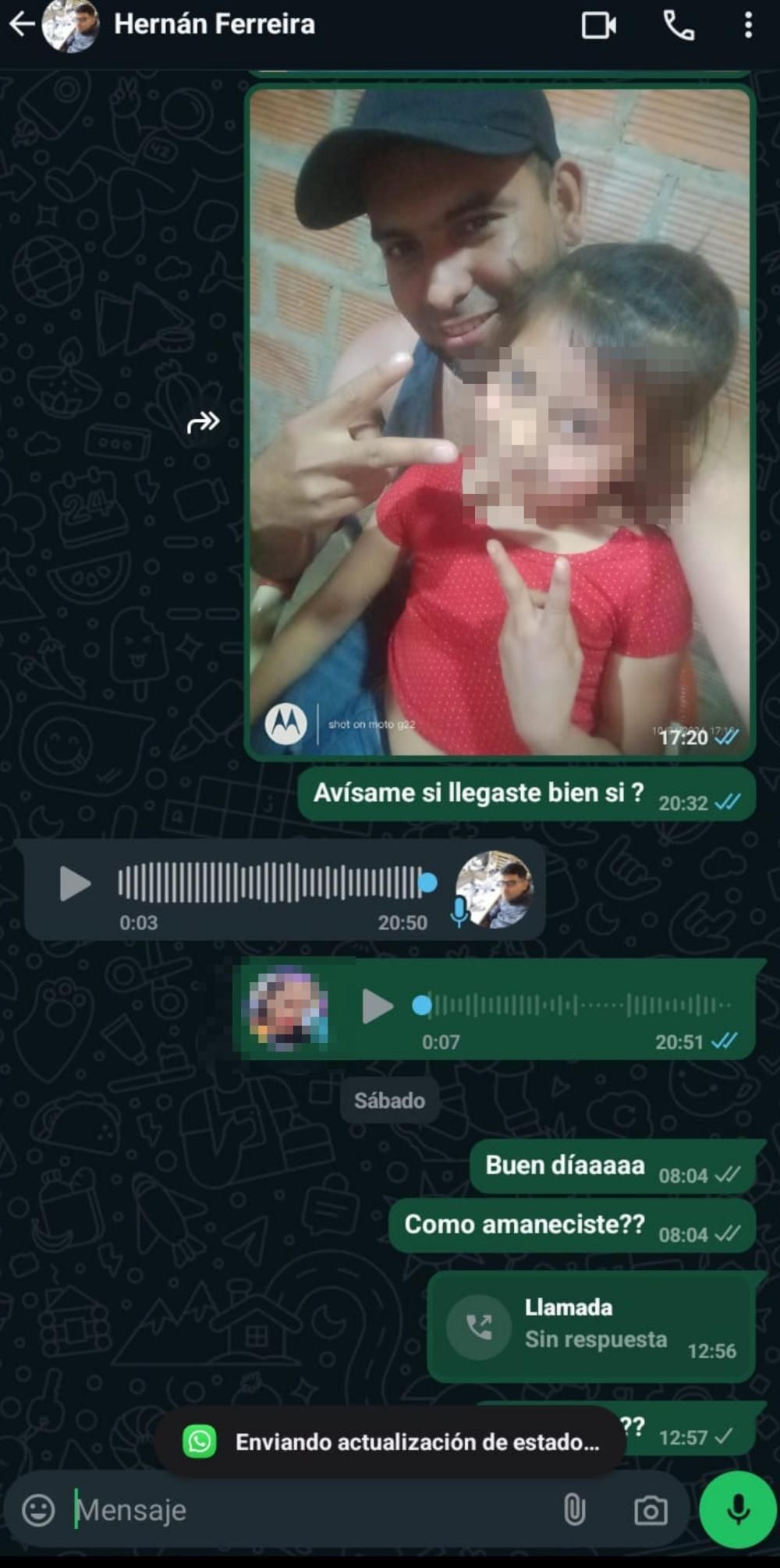 En las últimas horas, La Unión accedió a las capturas de la última conversación que tuvo el hombre llamado Hernán Ferreira Duarte con su pareja, antes de que su teléfono dejara de recibir los mensajes de WhatsApp.