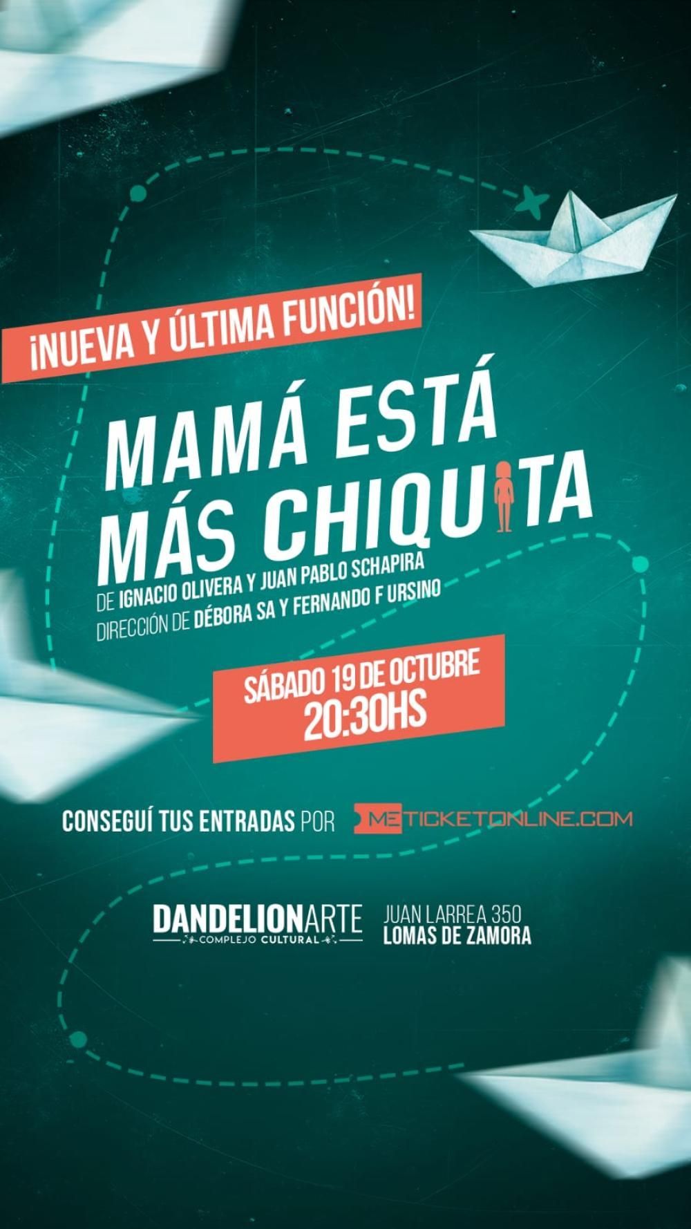 El lomense Facundo Pola es parte del elenco y, en una charla con el Diario La Unión, explicó que la función del próximo 19 de octubre será la cuarta presentación de "Mamá está más chiquita", con la que cerrarán la temporada de esta obra (las primeras tres fueron durante agosto). El espectáculo comenzará a partir de las 20.30 en Larrea 350.