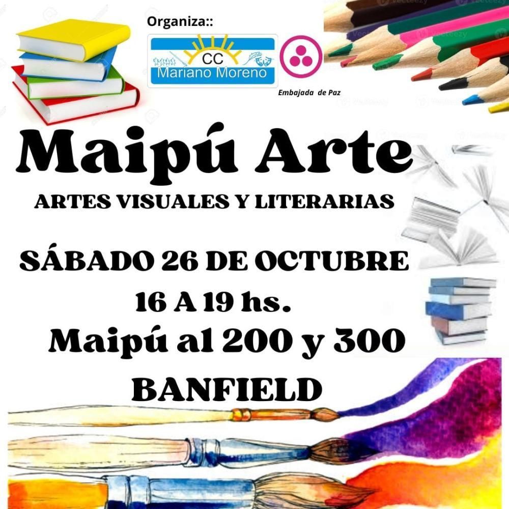 El Centro Cultural Mariano Moreno de Banfield realizará un evento que promete llenar de cultura al corazón de Banfield: Maipú Arte se desarrollará el sábado, donde artistas visuales y literarios tendrán la posibilidad de exponer sus creaciones en una de las calles más céntricas de la ciudad.