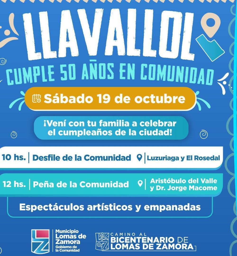 El 50º aniversario de Llavallol será una excelente ocasión para celebrar en comunidad los valores y la cultura local, recordar la historia de las primeras familias que se establecieron en la zona y disfrutar de un día lleno de actividades sociales y culturales con familiares y amigos.