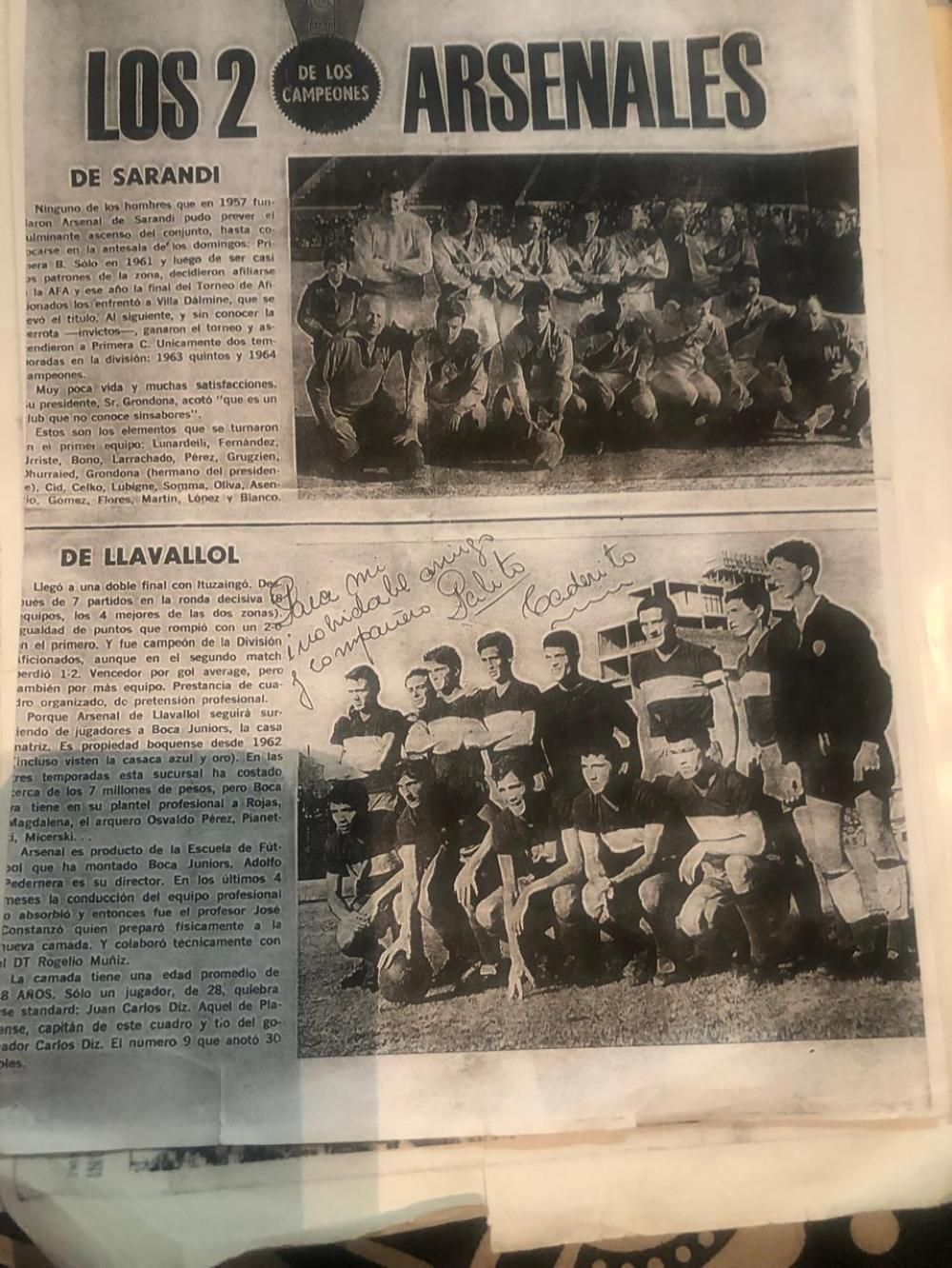 "Tengo todos los afectos en Llavallol, y ahora no es como es en esta época donde los chicos están con los celulares. En nuestra época, íbamos al colegio, después nos metíamos en Arsenal y no íbamos formando. La vida también nos dio la suerte de jugar en Primera, en ese momento el técnico era Adolfo Pedernera, quien en época dirigía Boca y también Arsenal porque lo manejaba un señor al que llamábamos Aníbal el 'Gordo' Díaz y le vendió todo a Boca", afirmó el ex futbolista.