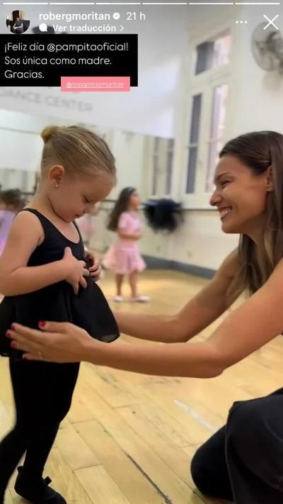 "¡Feliz día @pampitaoficial! Sos única como madre. Gracias", escribió Moritán en sus historias de Instagram, junto a un video de la modelo y su hija Ana en una clase de ballet.
