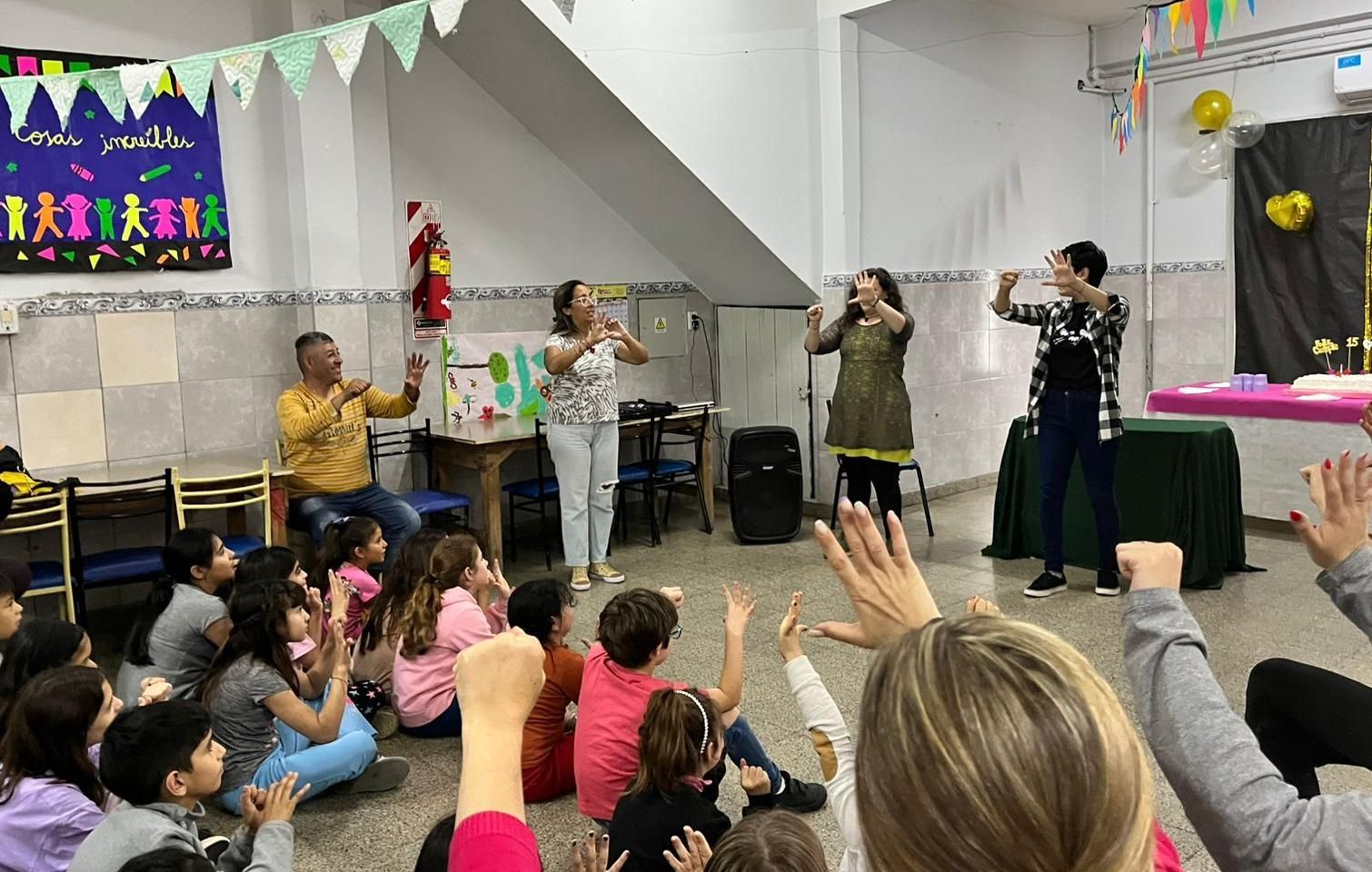 La alegría de llegar a los 15 años de trabajo de contención, apoyo y entretenimiento para los chicos de entre 6 a 12 años que asisten de lunes a viernes al espacio ubicado en la Sociedad de Fomento Turdera Sud, en 1° de Marzo 1360 se evidenció en cada rostro de quienes lo hicieron posible.