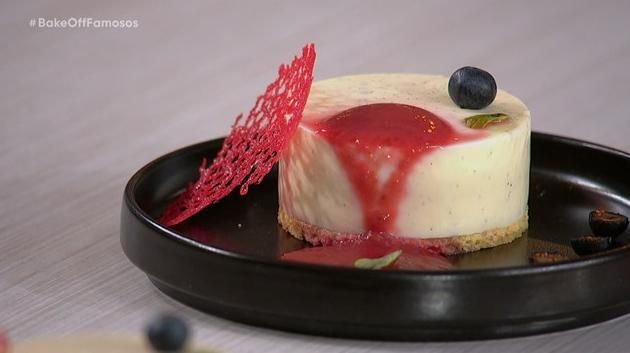 A pesar del traspié inicial, se la jugó con una panna cotta de queso y vainilla con masa bretona y coulis de queso y albahaca, decorada con un coral rojo.