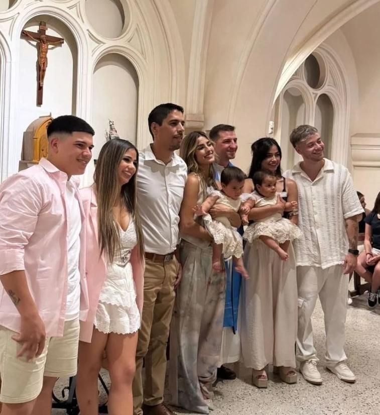 Daniela Celis y Thiago Medina celebraron el bautismo de sus gemelas, Laia y Aimé, en la Basílica de Luján rodeados de familiares y amigos en una emotiva tarde al aire libre.