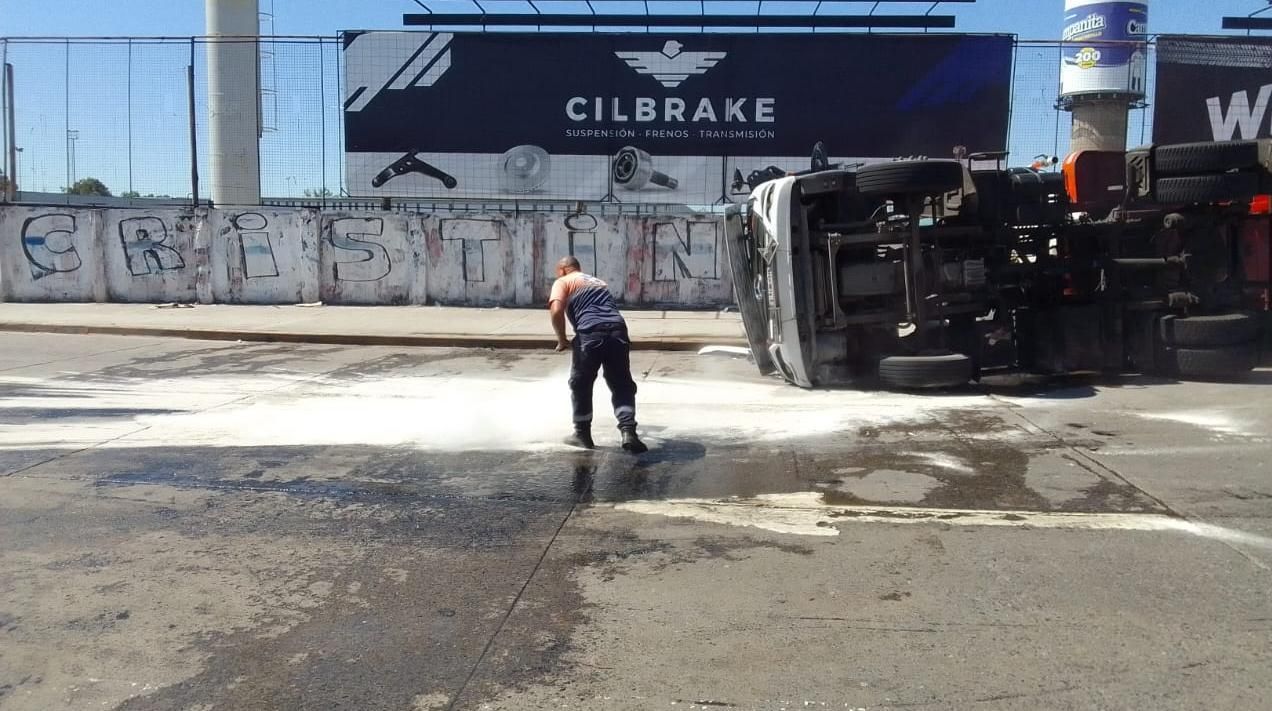 Los profesionales que intervinieron dieron vuelta el camión y lo colocaron en su posición normal. Defensa Civil se ocupó de neutralizar el aceite derramado sobre el asfalto.