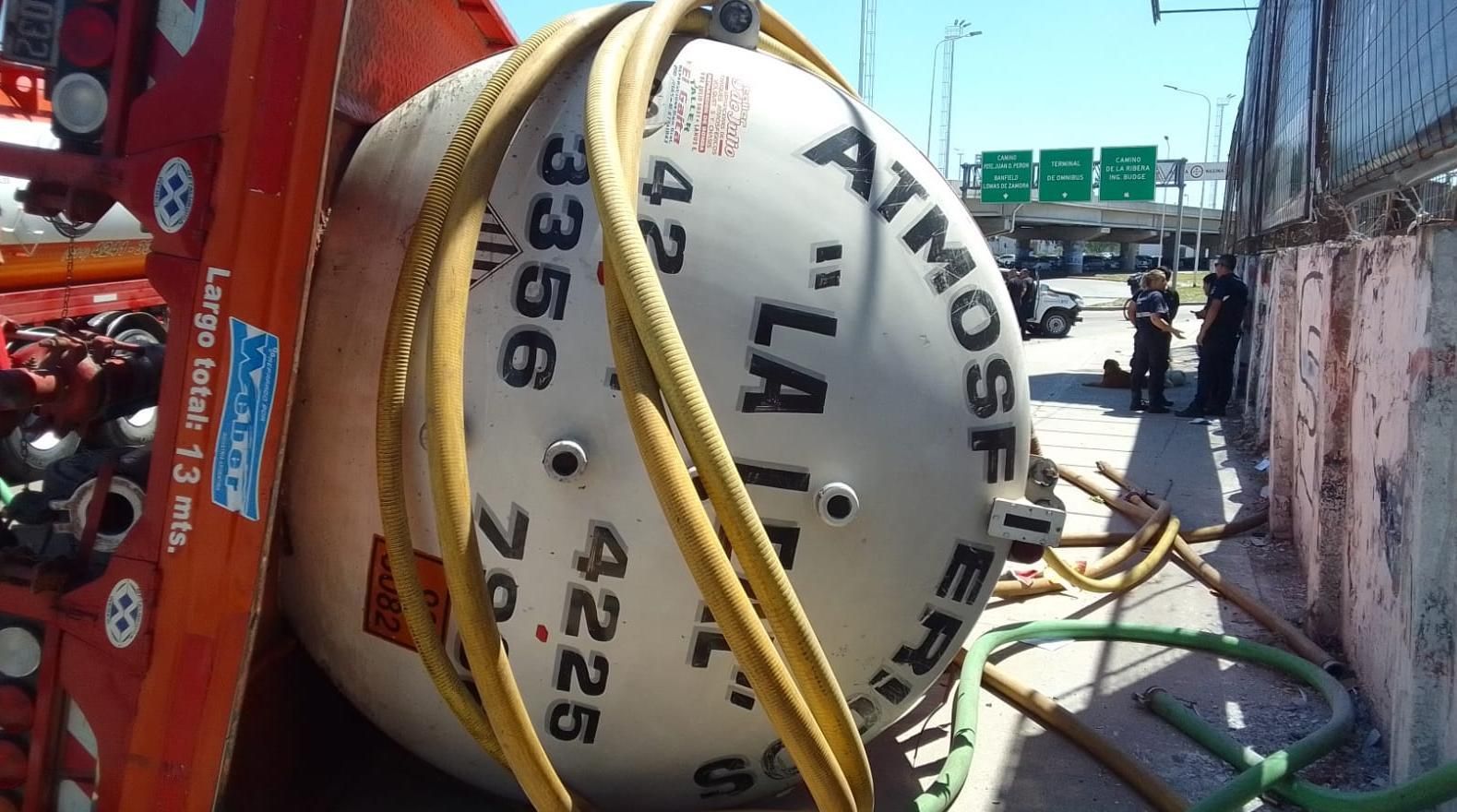 Un camión atmosférico perdió el control y volcó en las inmediaciones de Puente La Noria, en la localidad de Villa Fiorito. El conductor tuvo que ser hospitalizado.