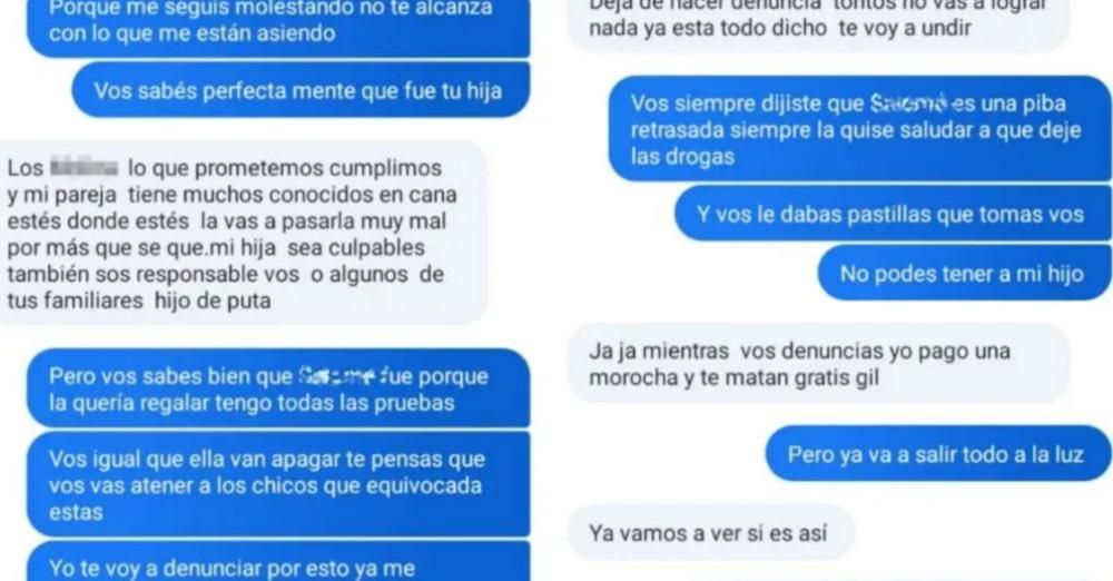 "No lo quería hacer, pero la golpeé porque él me quería dejar. Te juro que nunca me lo voy a perdonar, la dejé en la cama, me fui y cuando vine, él estaba llorando (el padre), y ahí aproveché y dije que fue él", sostuvo en otro de los mensajes. "Me mandé una cagada, y lo culpé al padre", insistió.