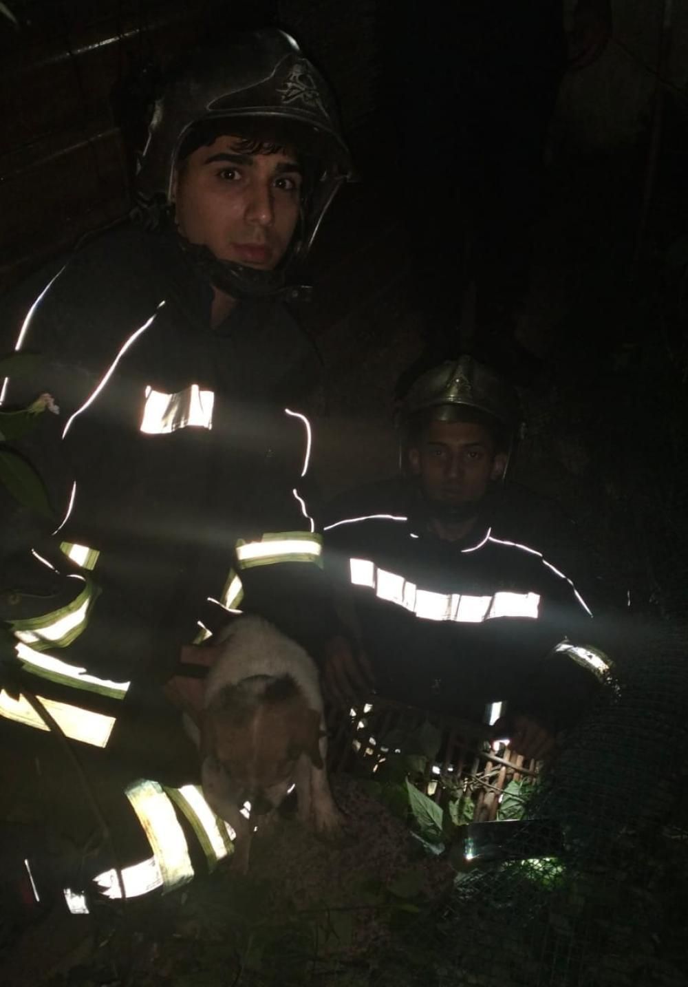 Los bomberos llegaron con un equipo especial de rescate. Colocaron una escalera en el pozo y lograron llegar hasta el perro para ayudarlo a subir. Después de media hora de trabajo, pudieron rescatarlo sano y salvo y luego se tomaron una foto con el perrito.