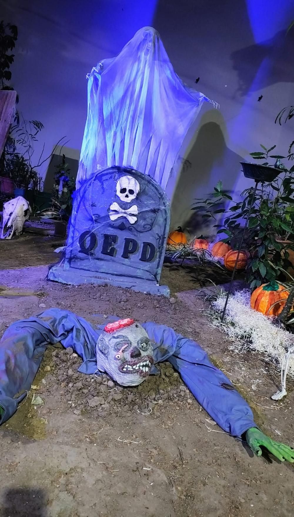 Fantasmas, tumbas, telarañas, carabelas, esqueletos, calderos de brujas, crucifijos, zombies, ataúdes y momias son algunas de las decoraciones que se encuentran dispersas por todo el jardín de entrada y el garage. "Hay algunos adornos que son mecanizados o cuentan con luces led para darle un mayor realismo", afirmó el vecino.