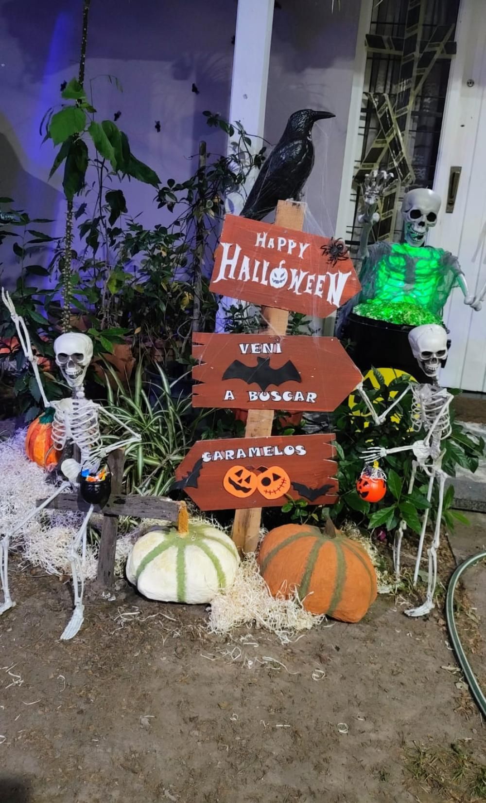 En pleno corazón de Temperley hay un domicilio que sobresale del resto por su aspecto terrorífico. Y es que la casa de Cristian y Tamara luce, desde el pasado miércoles, con un impresionante decorado referido a Halloween: fantasmas, tumbas, telarañas, carabelas, esqueletos, calderos de brujas, crucifijos, zombies, ataúdes y momias se pueden ver en la entrada, llamando la atención de cada vecino. Además, como si eso fuera poco, la pareja sale a la puerta disfrazada para la ocasión y reparten golosinas para todos los presentes.