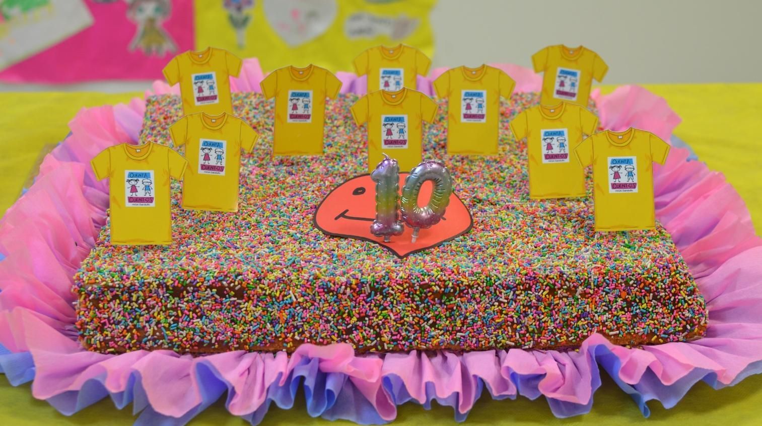 Como en todo cumple hubo torta, souvenirs, pasaron un video con la historia de las Cuentacuentos desde sus inicios allá por 2014 cuando Molina comenzó sola y luego fue sumando narradoras al grupo.