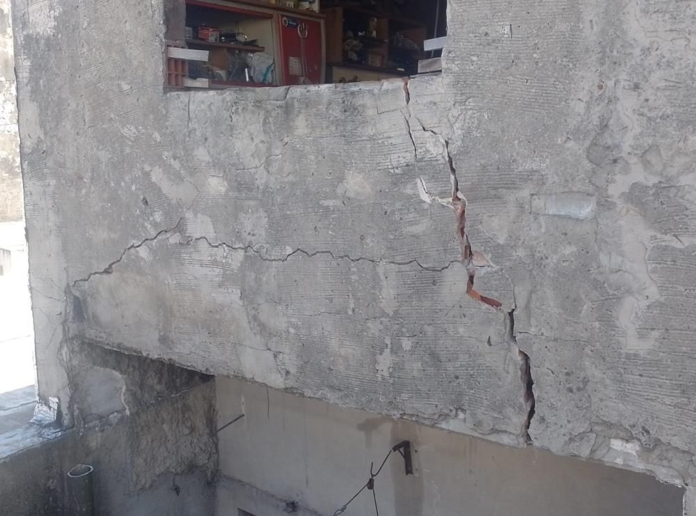 Arriba de la verdulería había una carpintería, que no fue alcanzada por el fuego. No obstante, en una casa lindera, el personal de Defensa Civil observó algunas grietas y rajaduras, por lo que se solicitó al área de Obras Particulares que pase a revisar las estructura.