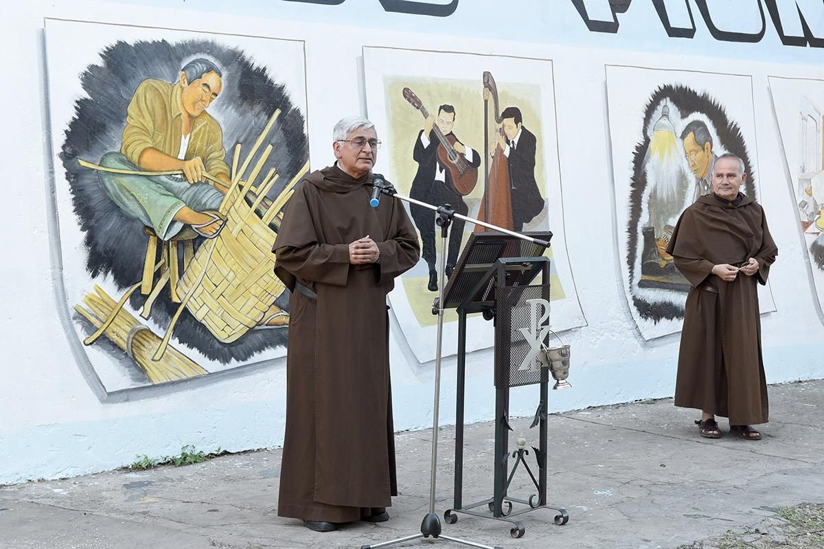 Cerca de las 18 comenzó una misa donde se depositaron las cenizas del Padre Francisco Ortíz y del Diácono Guillermo Luquin en el atrio del templo. Una hora más tarde, con la presencia de todos los vecinos, se dio lugar a un compartir comunitario, donde reinó la emoción entre charlas y anécdotas de los propios protagonistas del barrio mientras se deslumbraban con las imágenes del mural. Incluso algunos alumnos del Colegio Nuestra Señora del Carmen se acercaron para realizar un trabajo a partir de la obra de arte de Marcial Lazarte.