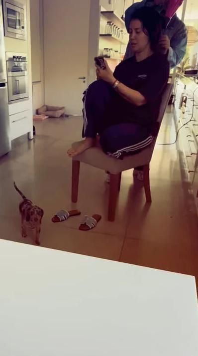 El siguiente posteo es un video en donde la conductora permite el ingreso de Kennys Palacios, su asistente y maquillador a las 12:51: "Por fin llegó Kenny a ayudarla a bajar la valija que había armado una hora atrás y no quería irse".
