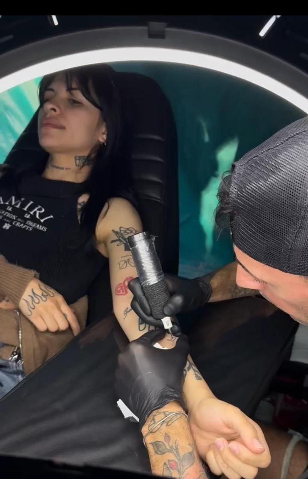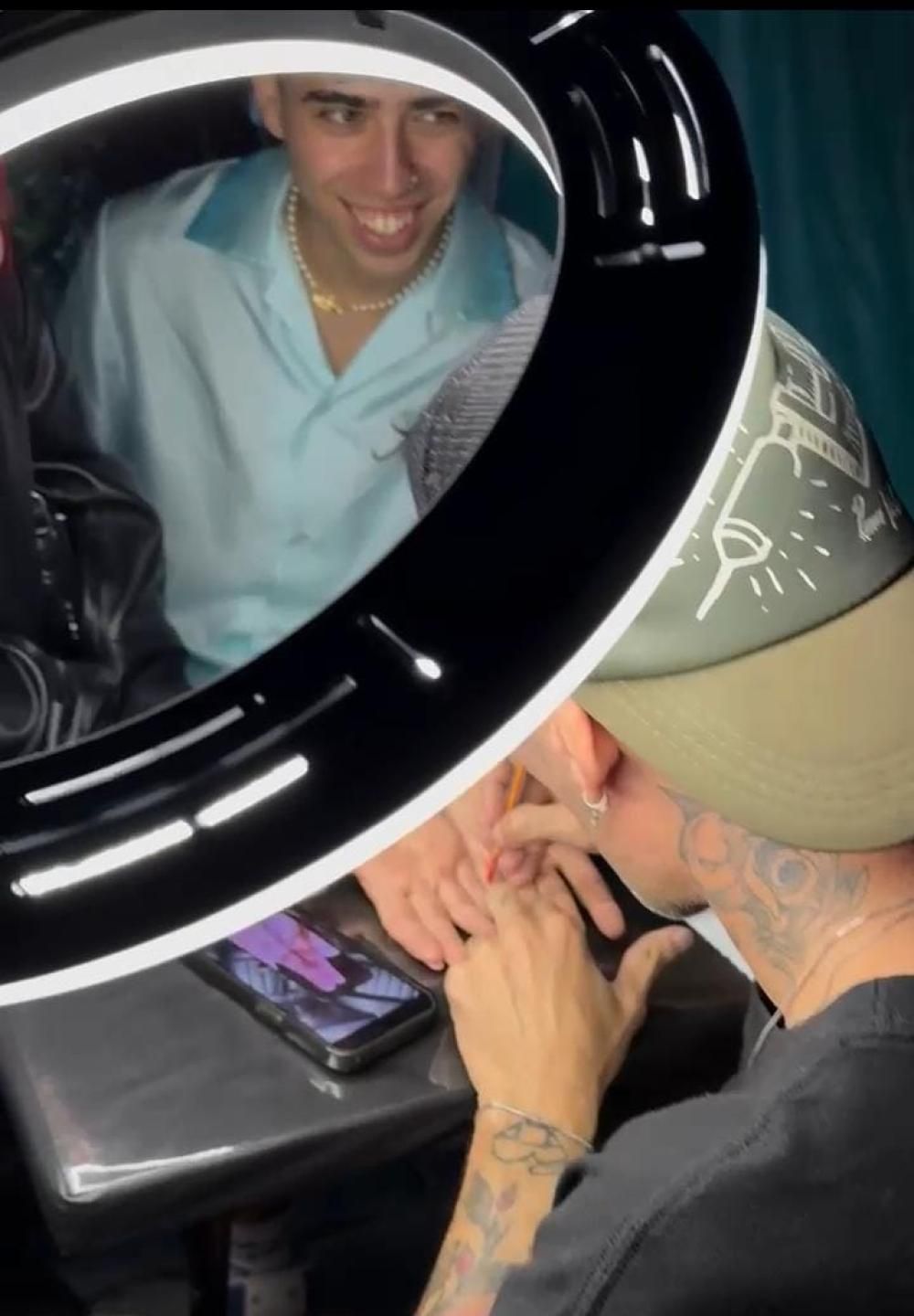 "Nicki se hizo en el brazo un corazón, que es una figura que aparece en su nuevo disco. Además, les hice el mismo diseño a La Joaqui y Cazzu", admitió Marcos, que también tatuó al cantante Luck Ra y a la influencer Tuli Acosta.