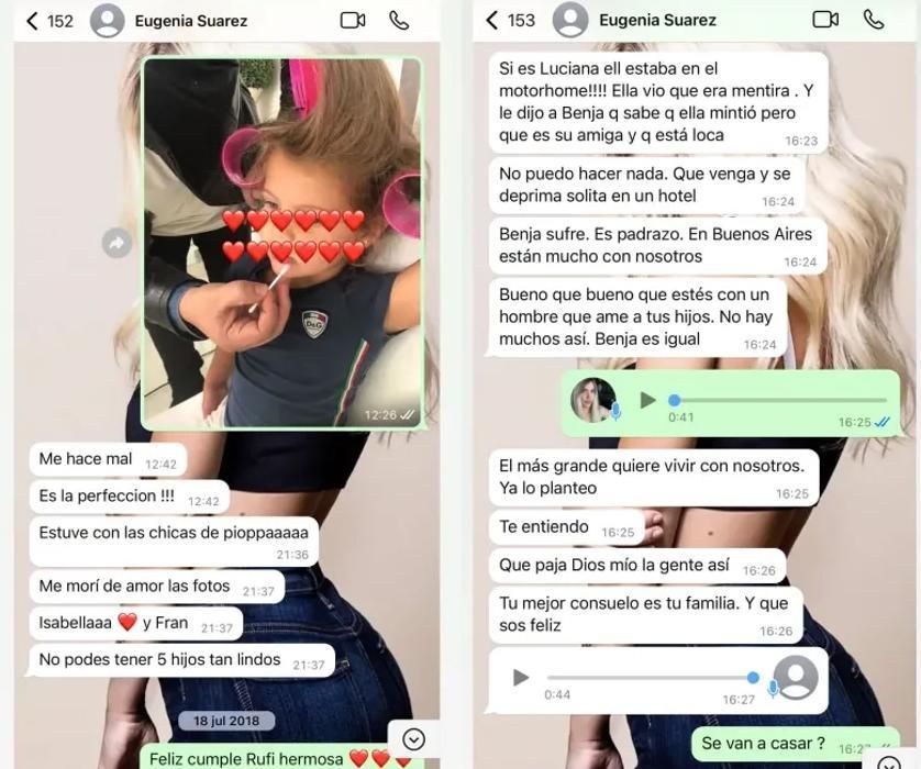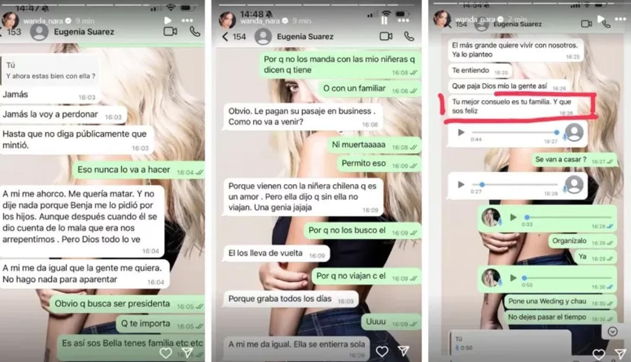 "Todo vuelve y esto no es nada. Benja sufre, es padrazo. En Buenos Aires sus hijos están mucho con nosotros. El más grande quiere vivir con nosotros. Que bueno que estás con un hombre que ame a tus hijos, no hay muchos así", le escribió la actriz a Wanda.