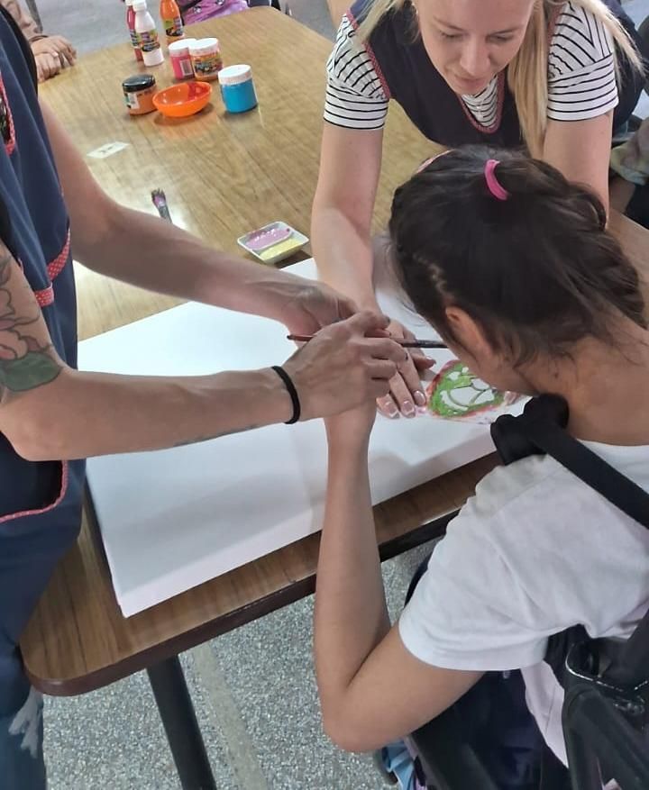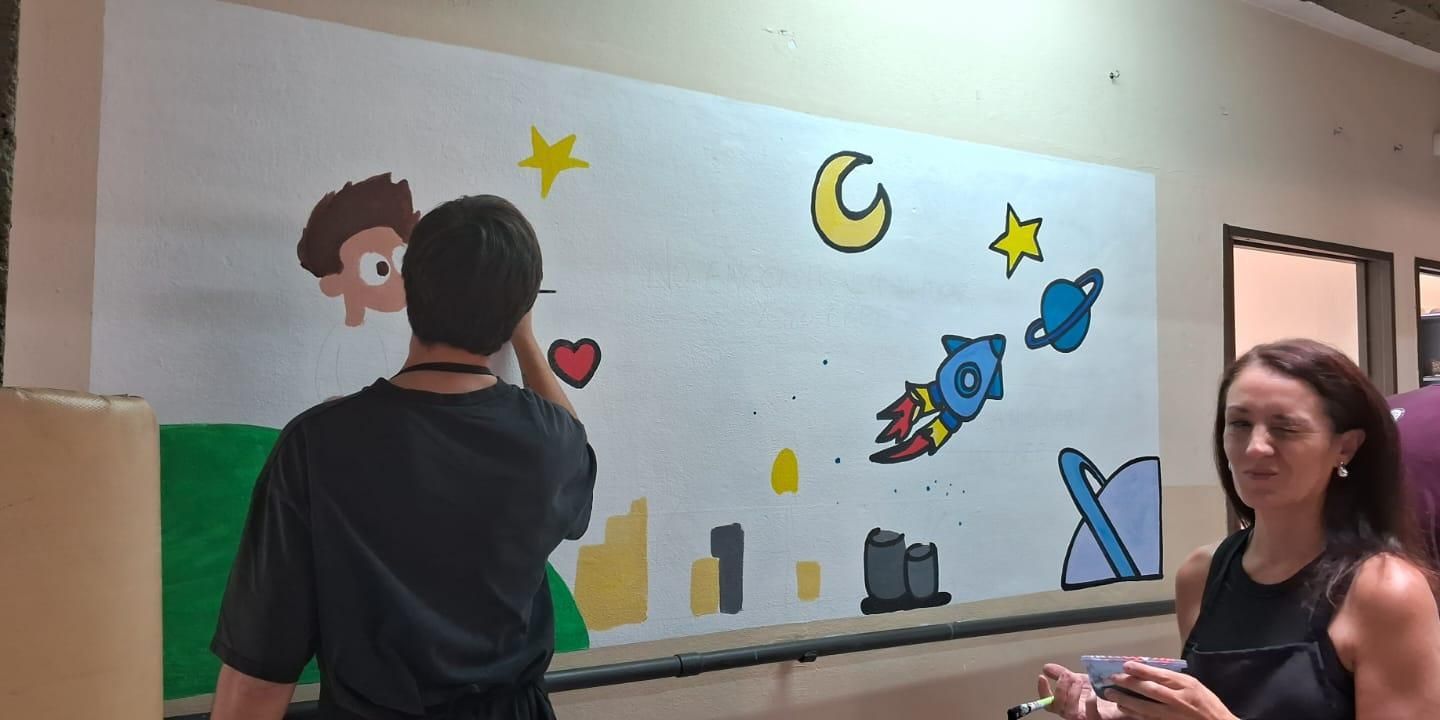 Juan Szela y Daniela Montesano intervinieron una pared en la Escuela Especial Ángeles Custodios.
