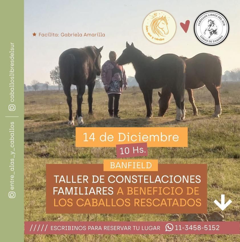 Una oportunidad para conectar, sanar y crecer. Esos son los objetivos propuestos por parte de Gabriela Amarilla, quien el próximo sábado 14 de diciembre dictará un taller de constelaciones familiares a beneficio de Caballos Libres del Sur: parte de lo recaudado será destinado a favorecer el bienestar de los equinos que son rescatados por la ONG lomense.