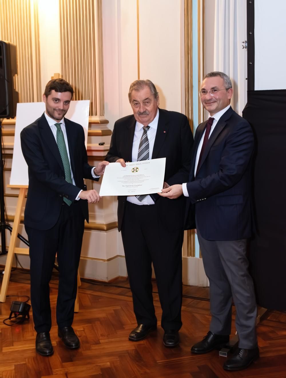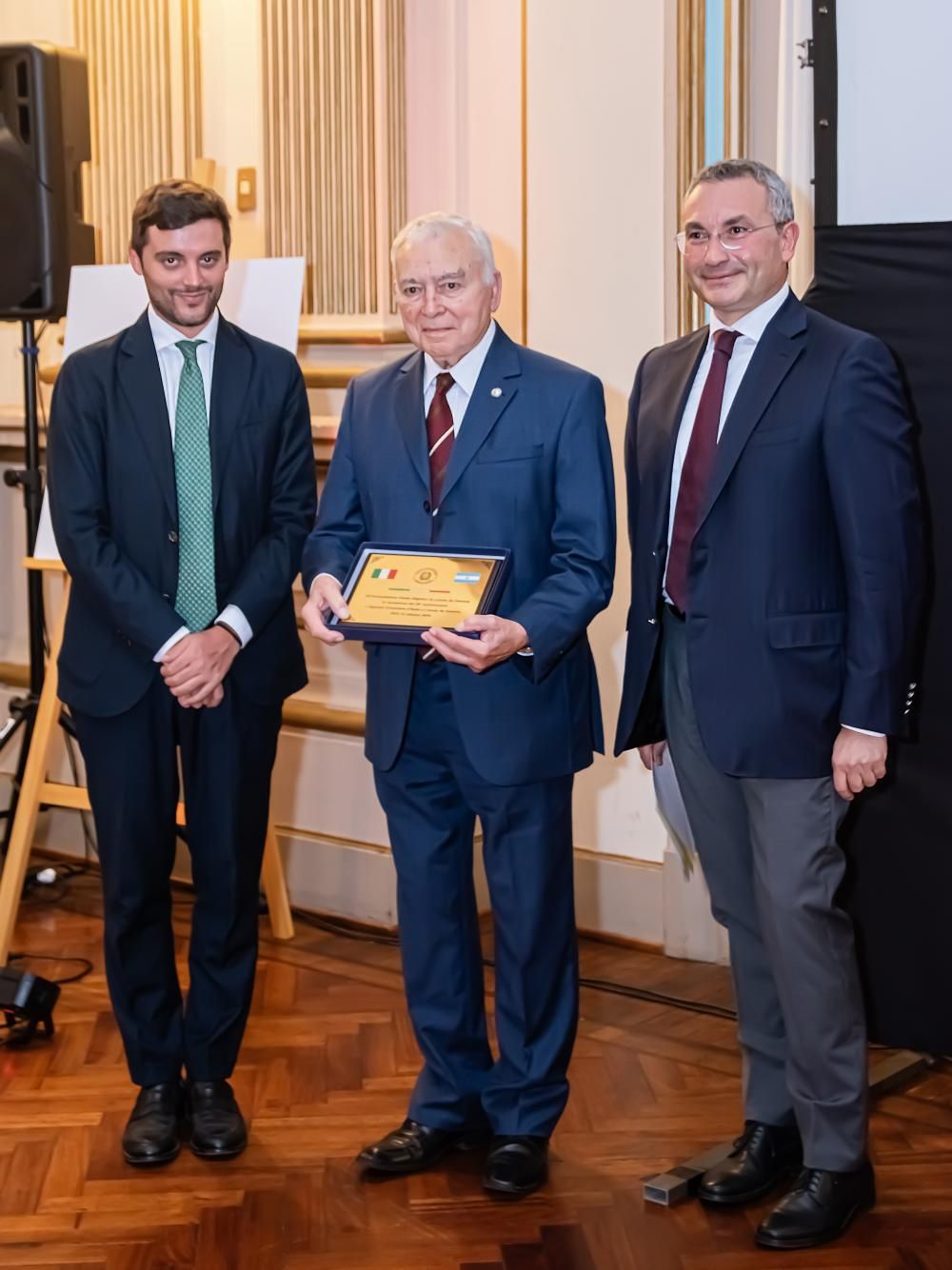 Luego se efectuaron dos entregas de reconocimientos: la primera fue para la Asociación Dante Alighieri de Lomas por el cumplimiento de sus 50º aniversario, a quien se le otorgó una placa conmemorativa, mientras que la segunda fue para el presidente de la Sociedad Unión y Estrella, Jorge Castiglioni, quien recibió el reconocimiento "Cavaliere dell'Ordine della Stella d'Italia" (Caballero de la Orden de la Estrella de Italia) por su tarea desinteresada en la promoción de la imagen y el prestigio de Italia, su colaboración permanente y su espíritu solidario.
