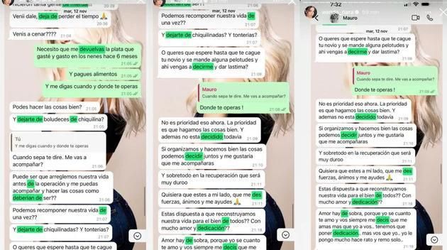 En una serie de historias de Instagram, la empresaria mostró chats que parecieran ser actuales, ya que se menciona el reloj que Mauro le habría prestado a la China Suárez en un reciente encuentro íntimo, mientras que los demás tienen fecha de entre el 12 de noviembre al 13 de noviembre de este año.