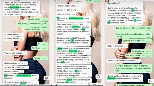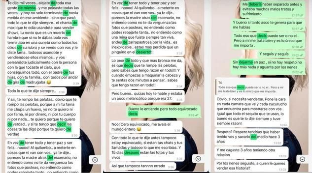 La empresaria hizo públicas las conversaciones que mantuvo con su ex, donde el futbolista ataca a la China Suárez, L-Gante y Maxi López.