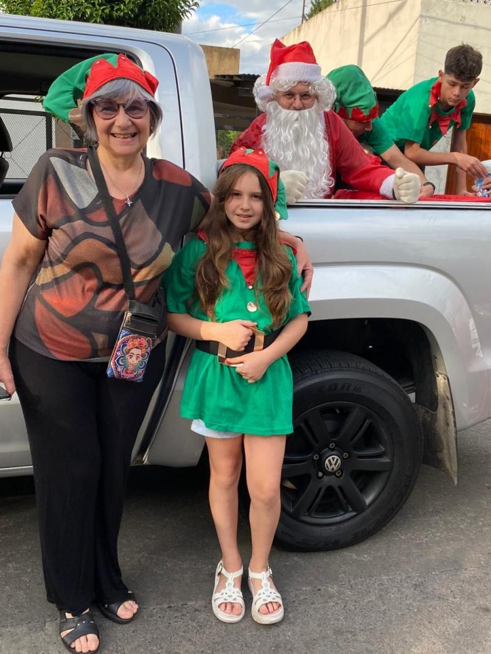 "Todos se cambian en mi casa y de ahí salimos. Mi hijo es Papá Noel y este año tuve el orgullo de tener a una nueva elfa que fue mi nieta. Ella tiene 10 años, estaba muy emocionada de ser parte de esta recorrida", contó la abuela Griselda con orgullo de transmitir a su familia el compromiso solidario como legado.