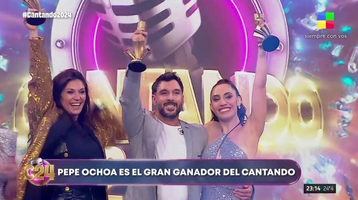 "Tengo en mis manos el sobre con la pareja ganadora de Cantando 2024. ¡El premio se lo lleva la pareja de Pepe Ochoa y Sol Bardi!", anunció Florencia, desatando el júbilo del equipo vencedor, que se alzó con la victoria al obtener el 55% de los votos, frente al 44,7% logrado por Juan Otero.