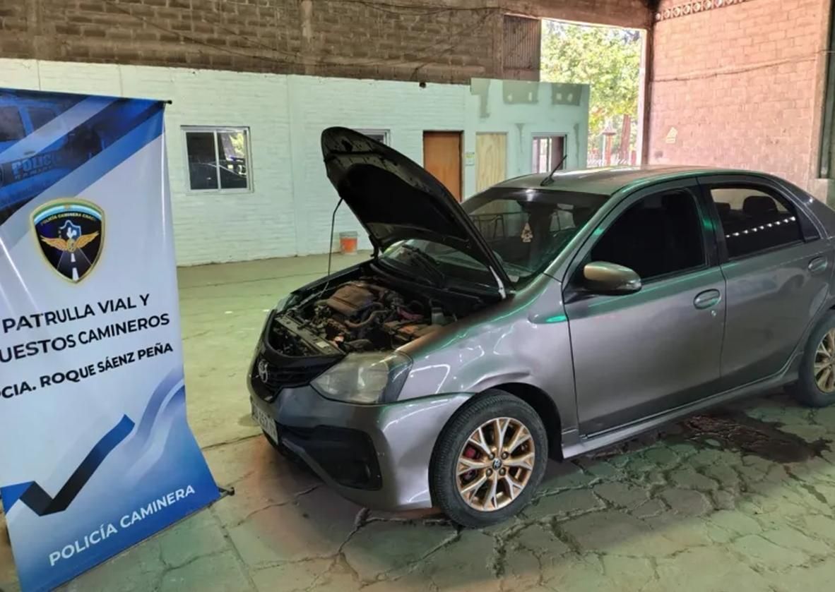 Todo ocurrió este domingo durante un operativo de control vehicular realizado sobre la Ruta Nacional Nº16, a la altura del kilómetro 172, en Sáenz Peña. Efectivos de la Policía Caminera pararon un Toyota Etios que pasaba por el lugar.
