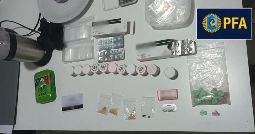 Los policías incautaron un vehículo, dos teléfonos celulares, dos guantes de tela, dos destornilladores, una balanza digital, dos cajas de clonazepam, 25 pastillas de éxtasis y una bolsa de nylon con 600 gramos de cocaína.