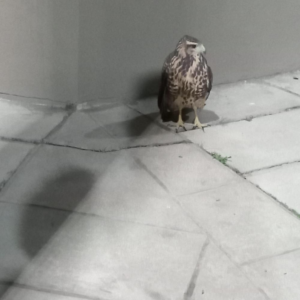 Los efectivos policiales alertados por los vecinos, constaron la presencia de un Aguilucho Ñanco que no podía volar, aparentemente por una herida, tal vez ocasionada por una persona que trató de cazarla.