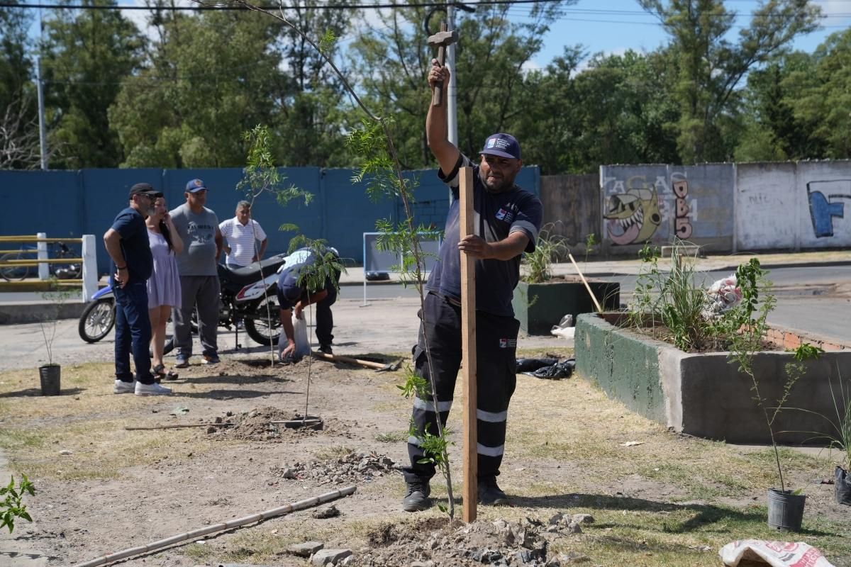 Los operativos de limpieza que lleva adelante el Municipio en los barrios se complementan con la forestación de árboles y plantas nativas.