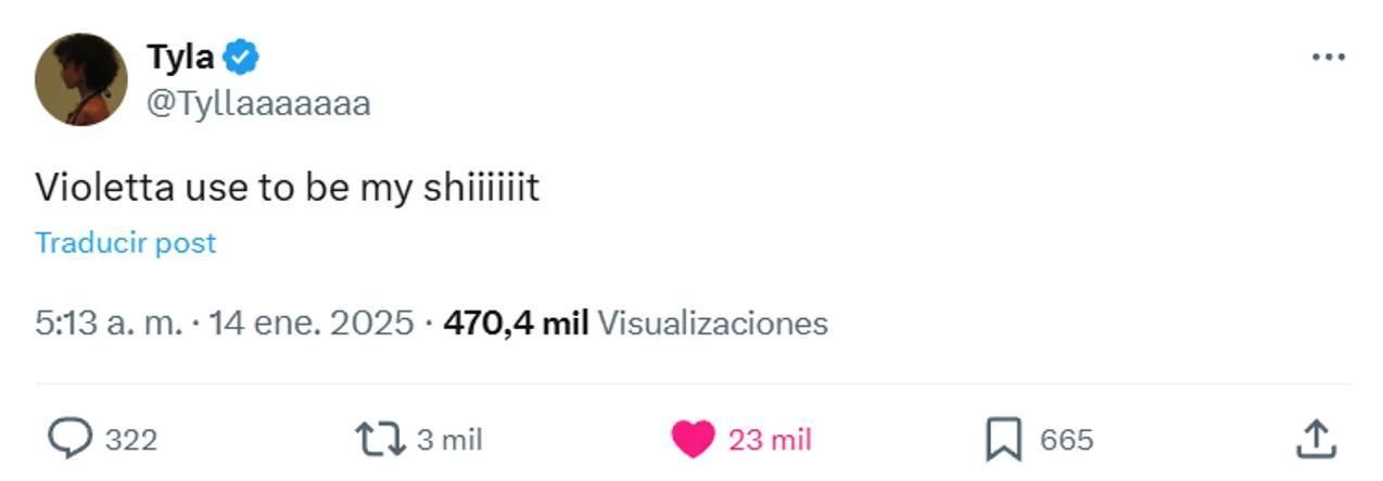 La sudafricana se mostró tan emocionada que incluso se manifestó en su cuenta de X: "Violetta used to be my shit", una frase que utilizan para expresar lo mucho que les gusta algo.