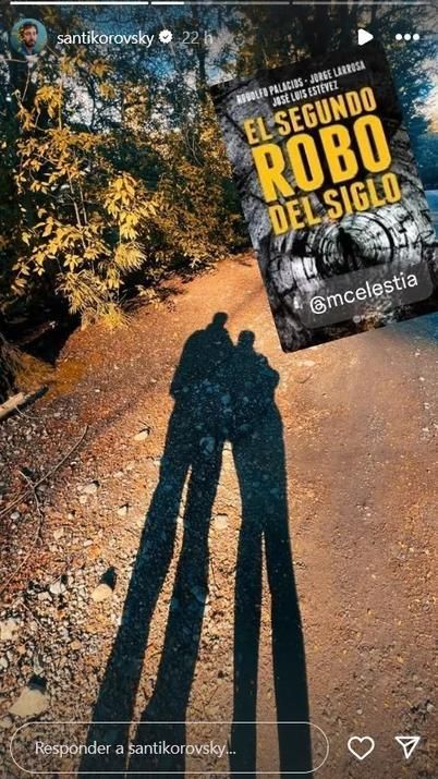 Además, compartió una imagen de sus sombras abrazadas y superpuso la tapa de un libro ficticio titulado "El segundo robo del siglo", bromeando sobre su relación y sobre la belleza de la actriz.