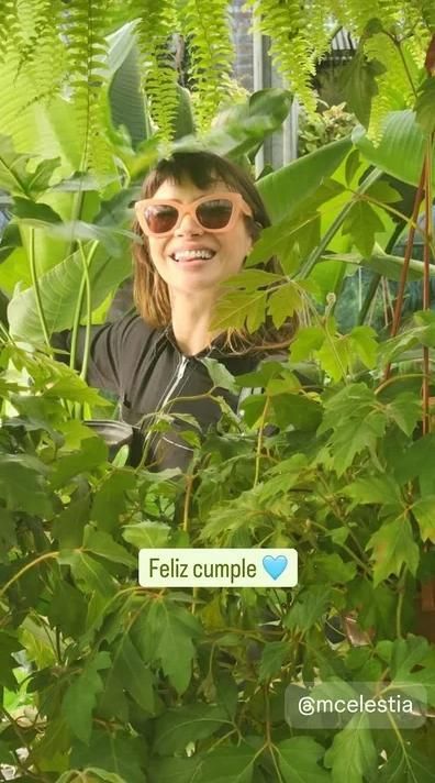 "Feliz cumple", escribió el protagonista de División Palermo en una historia de Instagram en la que subió una foto de la actriz rodeada de plantas.