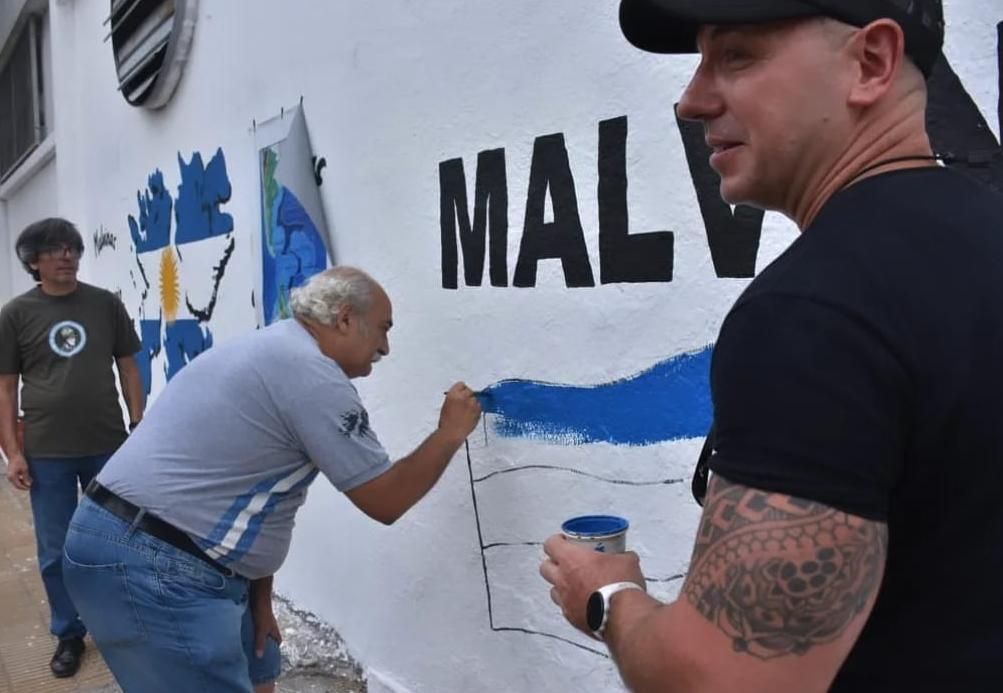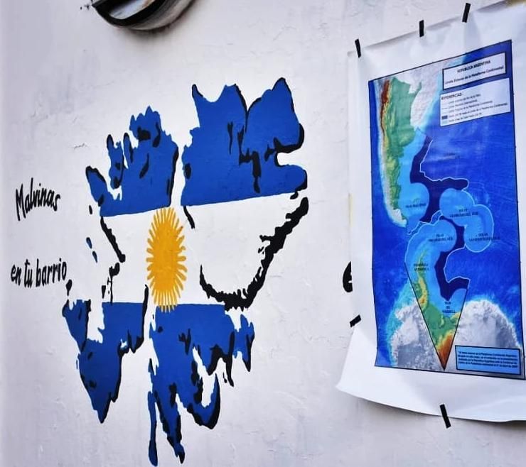 Este mural se plasmó en el marco del aniversario de la primera ocupación ilegal de las Islas, que fue el 3 de enero de 1833, fecha en que por fuerzas británicas desalojaron a la población y a las autoridades argentinas.
