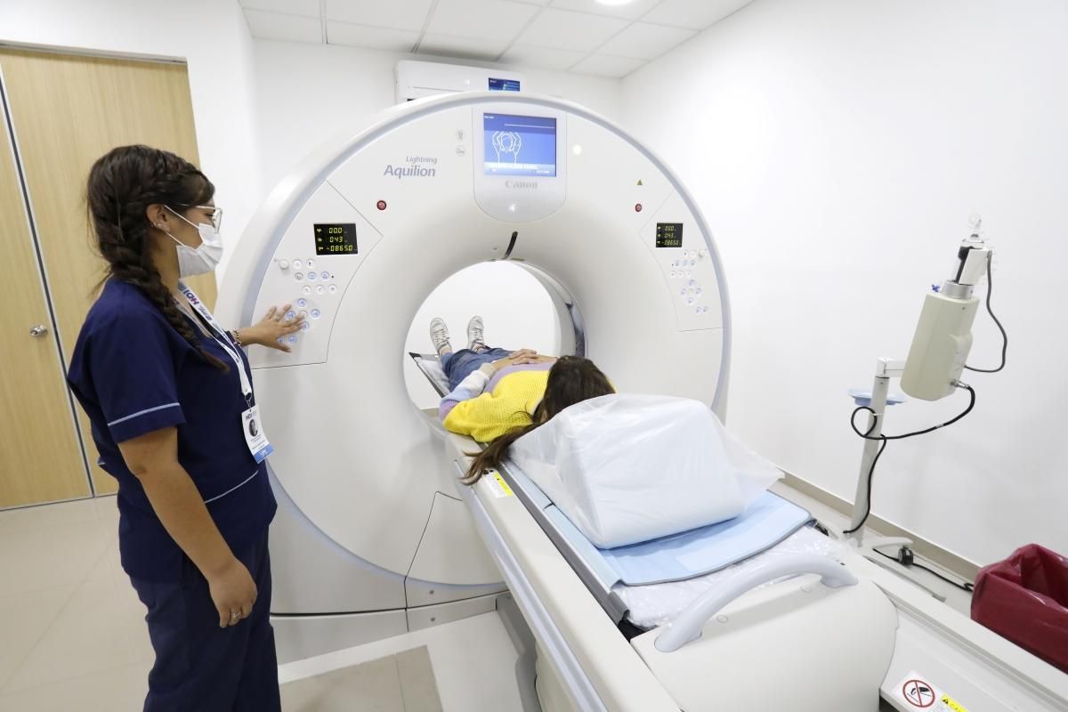 En el hospital también hacen estudios y análisis médicos con aparatos de últimas generación como el tomógrafo, que sirve para diagnosticar una infección, identificar masas y tumores, estudiar los vasos sanguíneos, evaluar los órganos del tórax, detectar enfermedades en el sistema digestivo, y evaluar el cerebro y la columna vertebral.