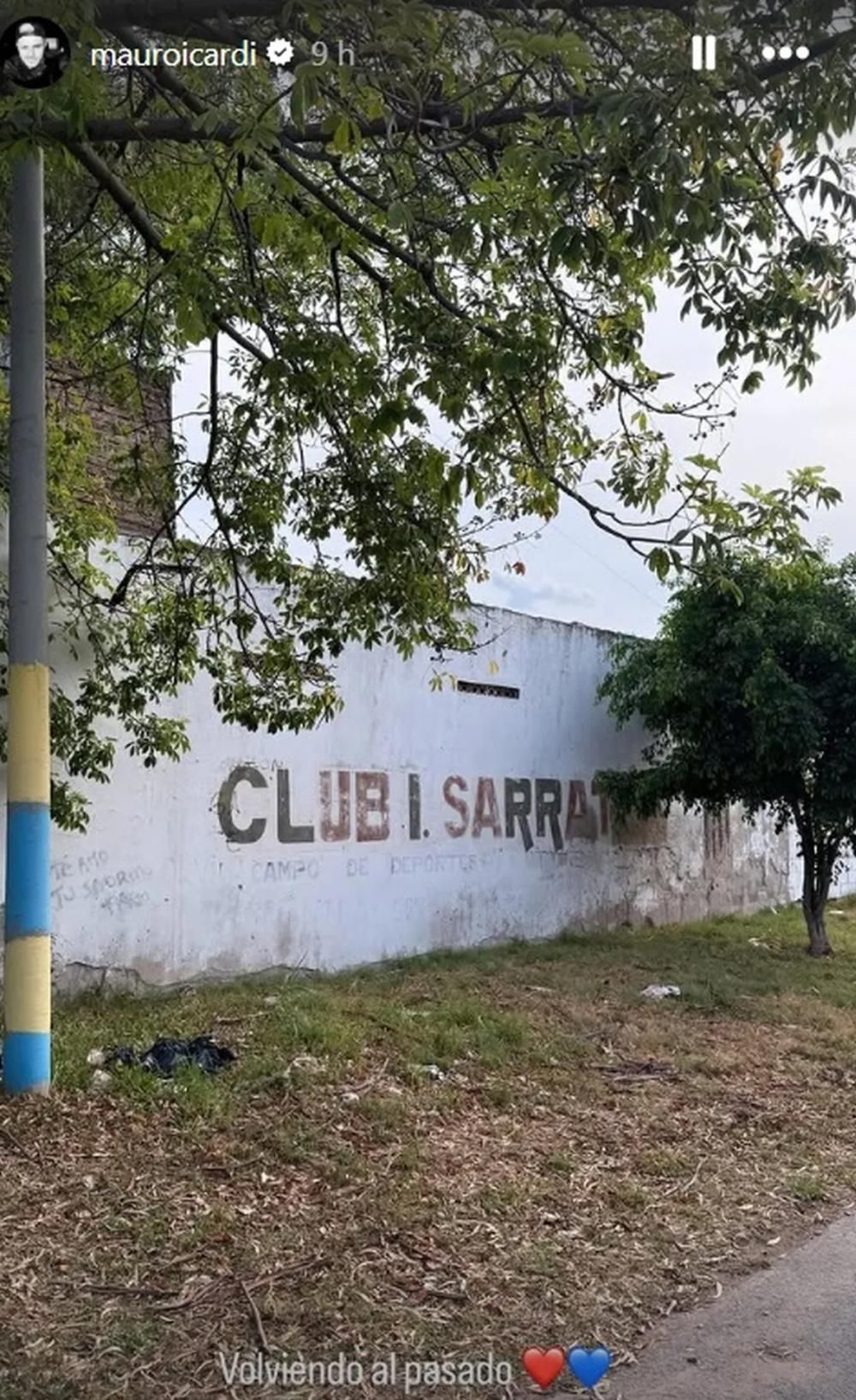 El futbolista, en su visita a su tierra natal, incluyó una foto del Club Sarratea, donde dio primeros pasos deportivos. "Volviendo al pasado", escribió junto a la postal.