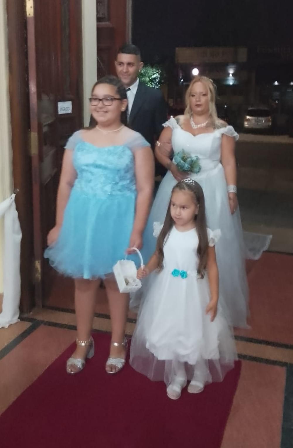 La pareja hace 14 años que está junta, contaron que se conocen desde que eran muy chicos y junto a las dos hijas que tienen se reconocen como "una verdadera familia 100% del Gasolero". "Para el baile carioca compramos cotillón de Temperley porque lo pensamos de esa forma desde el momento que decidimos casarnos", expresó Gisela.