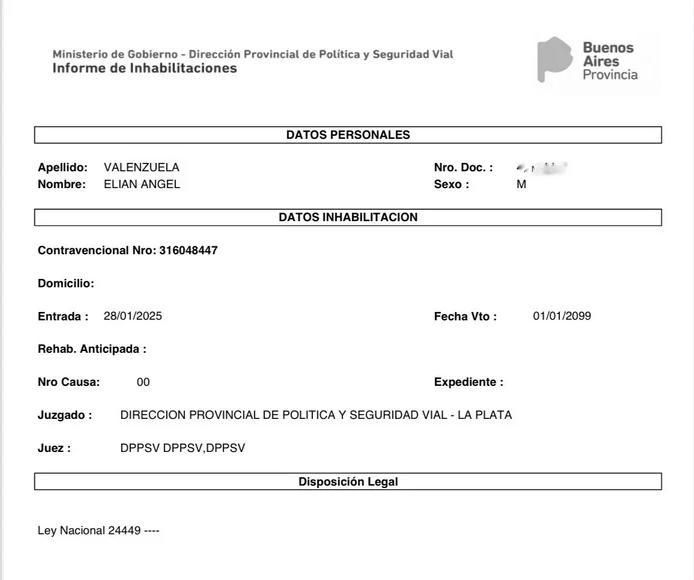 El Ministerio de Transporte de la provincia Buenos Aires, liderado por Martín Marinucci, dispuso la inhabilitación preventiva de la licencia de conducir de L-Gante.