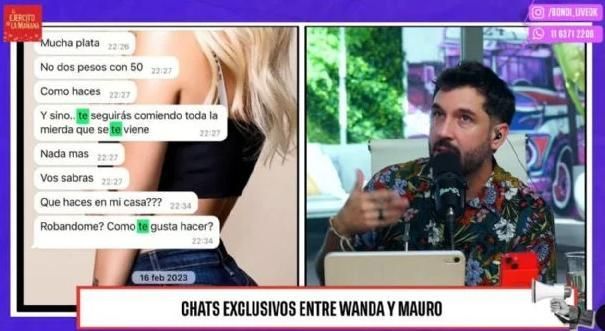 En otro chat, Mauro le recriminó a Wanda: "La única que juega conmigo sos vos. ¿O no te das cuenta? Que es lo que le demostraste al mundo entero. Seguí poniendo historias con pelotudeces. Te la das de viva". Enojada, Nara sentenció: "Vos estás enfermo, seguí tu vida. Buscando cag...la mía."