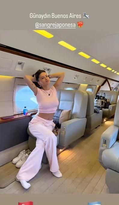 Luego el futbolista público una foto de la China en el avión, esta vez despierta, junto a una frase en turco: "Günaydin Buenos Aires", que significa "Buenos días, Buenos Aires".