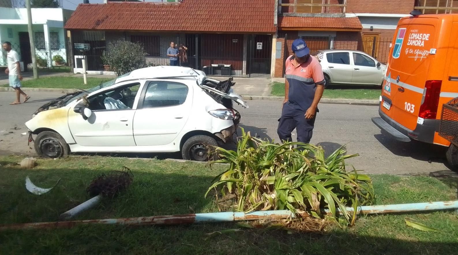 El hecho ocurrió este domingo en la calle Voltaire al 1900, entre Neuquén y Punta Alta, a dos cuadras de la Plaza Santa Marta. El protagonista del desastre fue un Peugeot 207 color blanco.