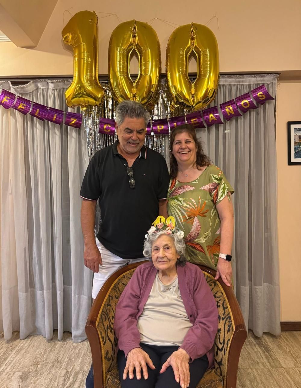 Ayer por la noche, toda la familia se reunió para celebrar los 100 años de Adelfa, todo un regalo de la vida. Y la cumpleañera les dedicó unas palabras a sus afectos más cercanos: "Ellos son muy importantes, son los que me cuidan y eso lo valoro muchísimo".