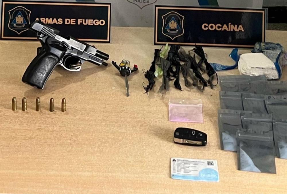 Los efectivos policiales requisaron a los detenidos, y secuestraron entre sus pertenencias 227,5 gramos de cocaína distribuidos en varios envoltorios, 7,6 gramos de marihuana y una pistola Bersa Thunder calibre 9 milímetros con numeración suprimida y cinco municiones calibre 22.